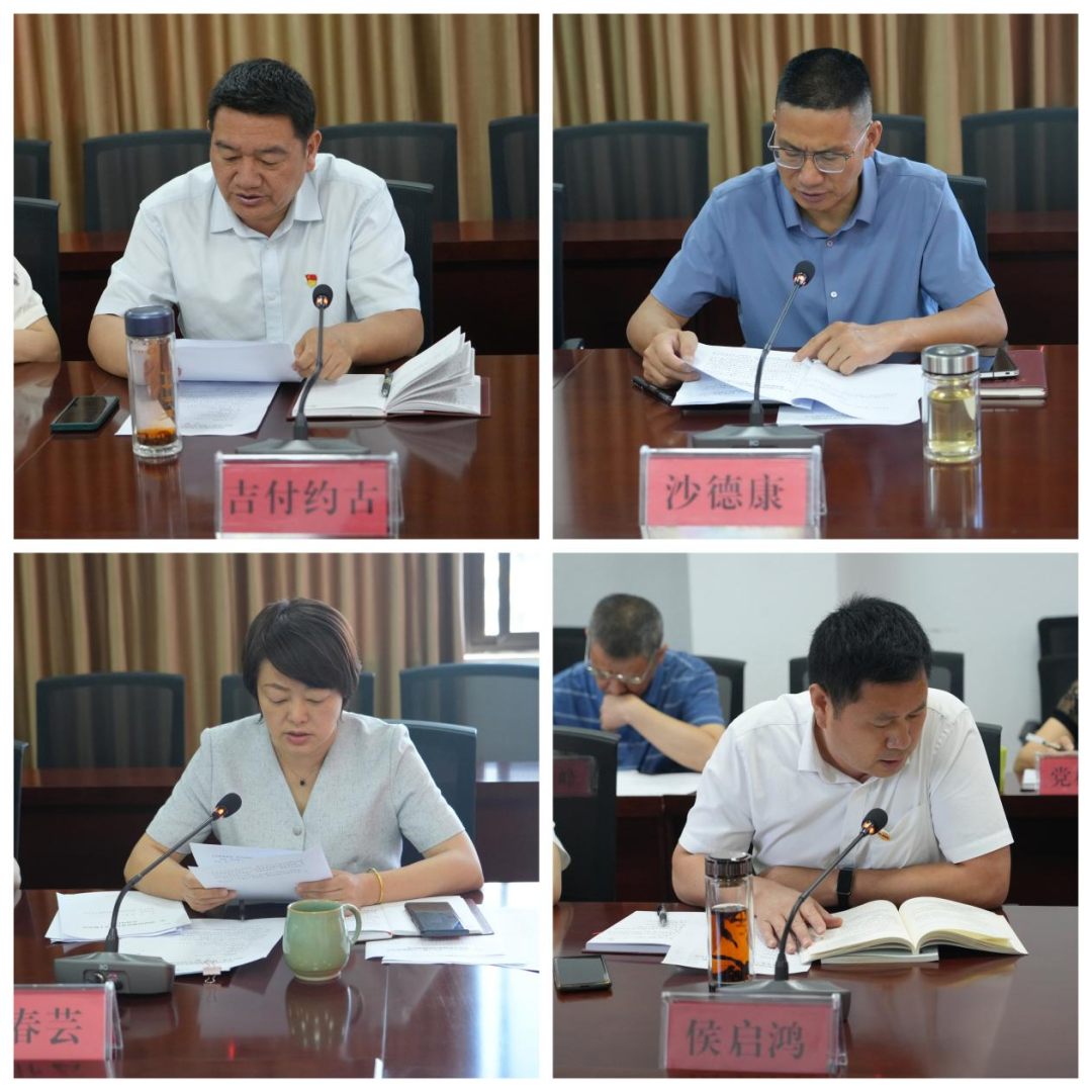 在“第一议题”环节,党委副书记、工会主席吉付约古领学了习近平在中共中央政治局第二十一次集体学习时的讲话精神;党委委员、宣传统战部部长邹春芸领学了“学习强国号”文章《一见·从伟大抗战精神,领悟共产党人的初心、决心与信心》;党委委员、纪委书记沙德康传达学习了四川省省级层面深入贯彻中央八项规定精神学习教育工作专班转发《关于把云南省曲靖市统计造假、政治生态恶化的典型案例作为学习教育反面教材的通知》的通知;纪检监察审计处处长侯启鸿领学了《贯彻落实中央八项规定精神正负面清单》专题七、八、九。