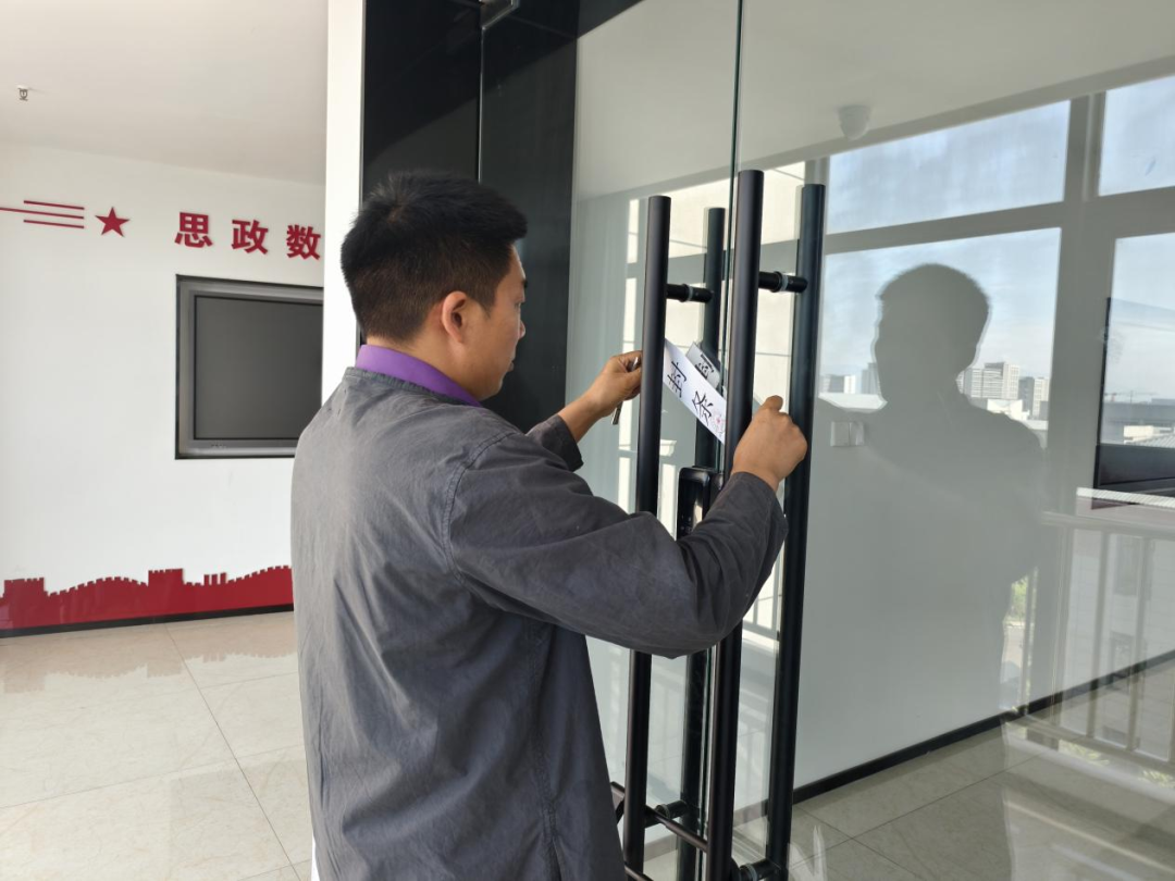 排查组到各教学部门,检查门窗锁具完好情况,明确要求暑期离校前必须切断水电、锁好门窗,从源头杜绝安全风险;检查食堂燃气、电路安全隐患,并对负责人强调假期期间的安全管理责任,要求做好设备的停运工作;在雏鹰剧院、学术报告厅,逐一排查应急疏散通道、消防设施是否存在安全隐患;在学生公寓,要求宿管对离校寝室做好断水电、锁门窗检查,并做好留校学生的安全管理工作;在实验实训室,要求统一规范张贴封条,明确假期管理要求,严禁无关人员进入。