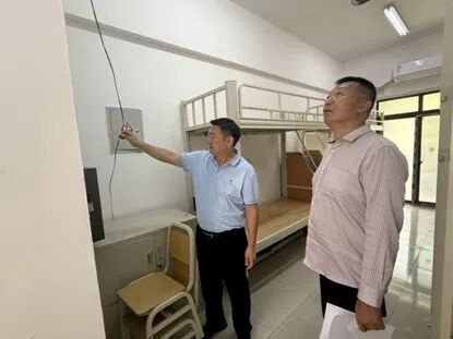 为确保2025级新生报到工作平安、有序进行,全面排查整治校园安全隐患,营造安全、和谐、温馨的入学环境,9月4日至5日,学校党委副书记、工会主席吉付约古同志牵头,组织安全保卫处(武装部)、后勤与国资管理处、学生工作处等相关部门负责人组成联合检查组,对新生即将入住的宿舍和学生食堂进行了全面的安全隐患排查及卫生状况检查。