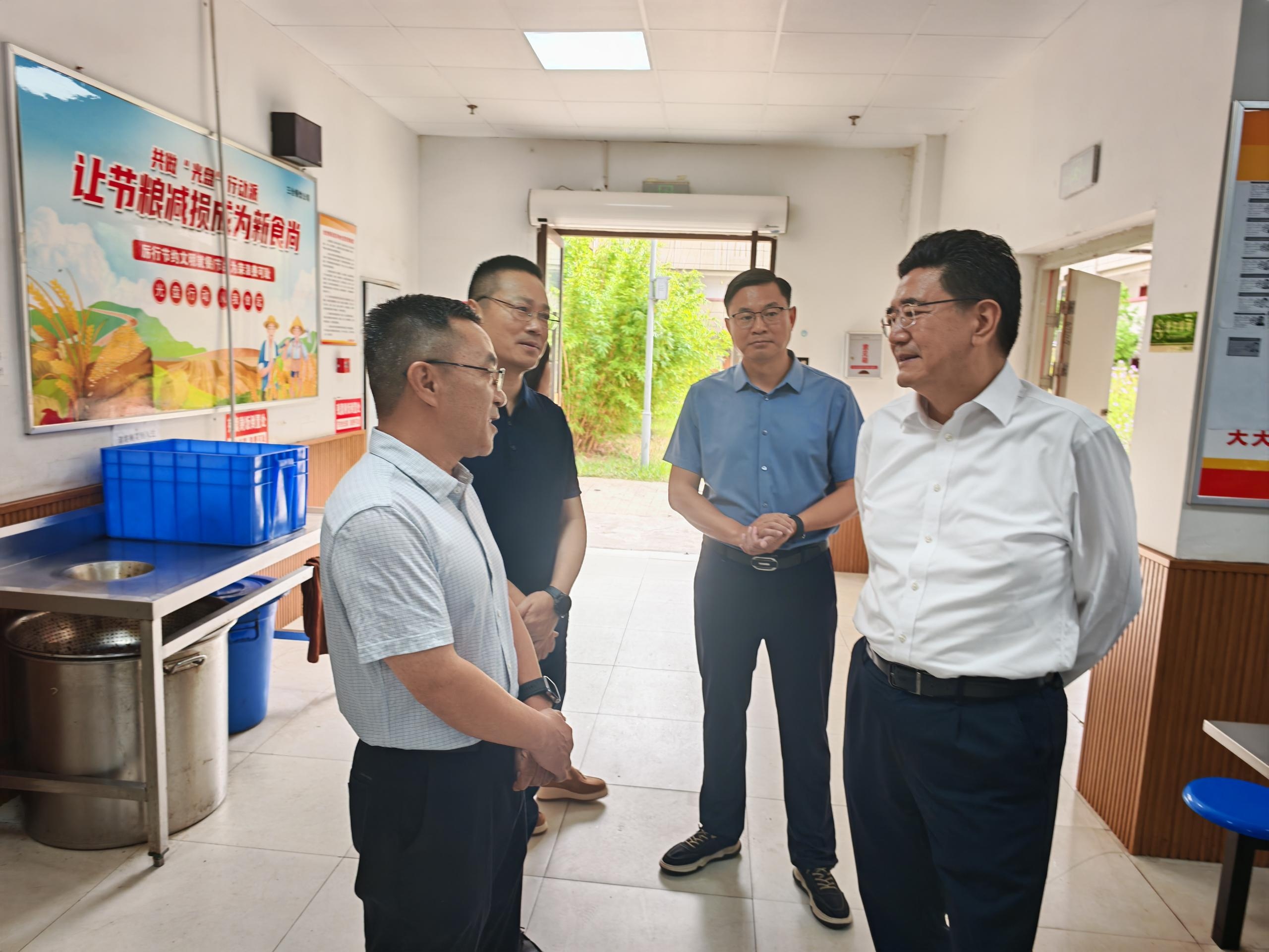 督查过程中,沙文一行深入食堂各个区域,详细了解学校食堂管理、学生用餐环境,对食堂食材采购、验收、储存、餐具清洗消毒、食品留样等重点环节进行检查,并听取学校、食堂管理员对相关工作的情况汇报。