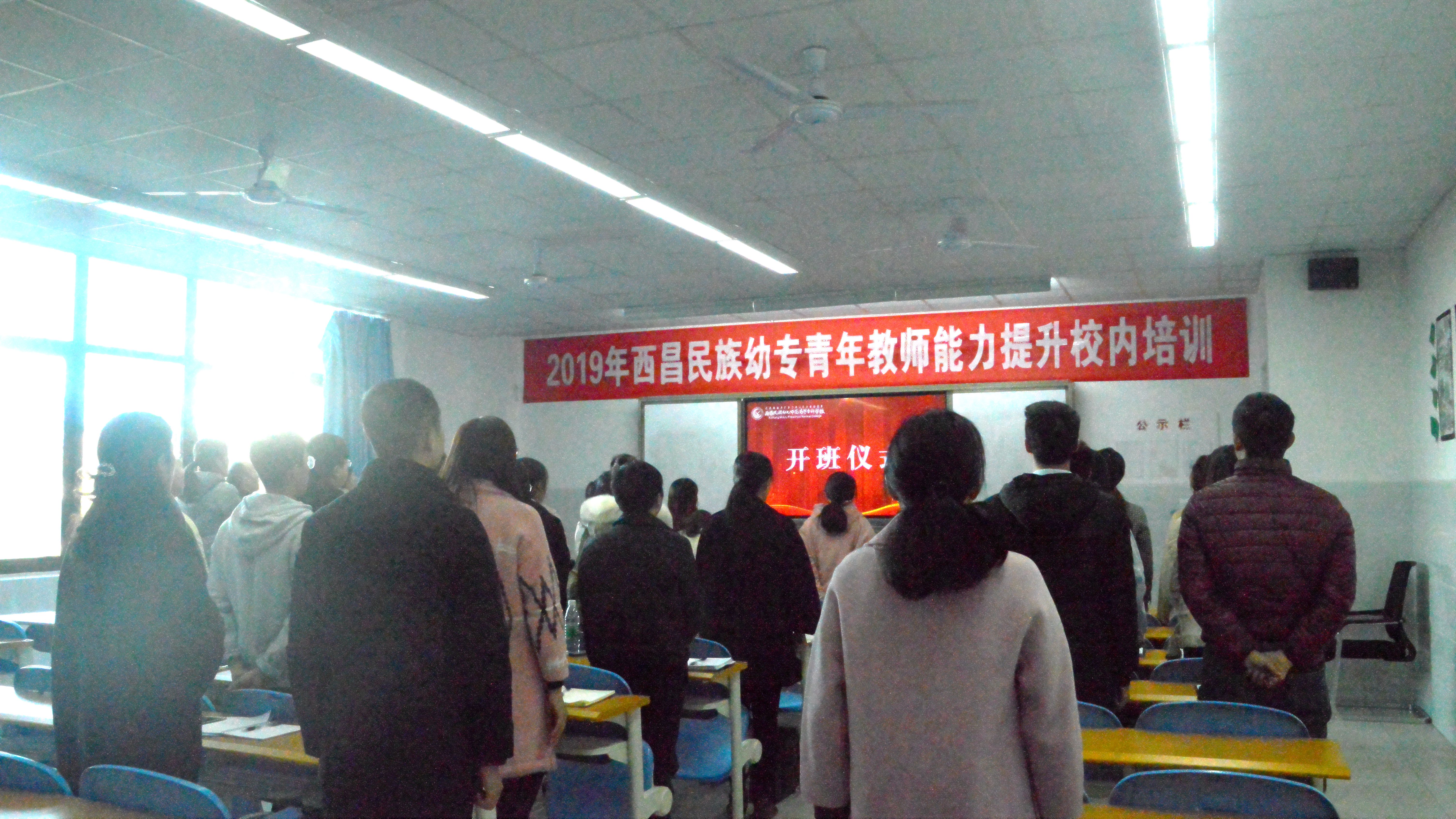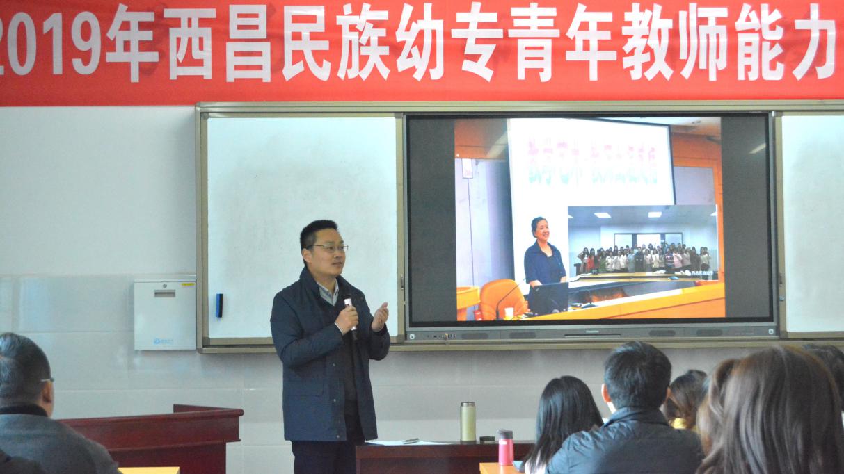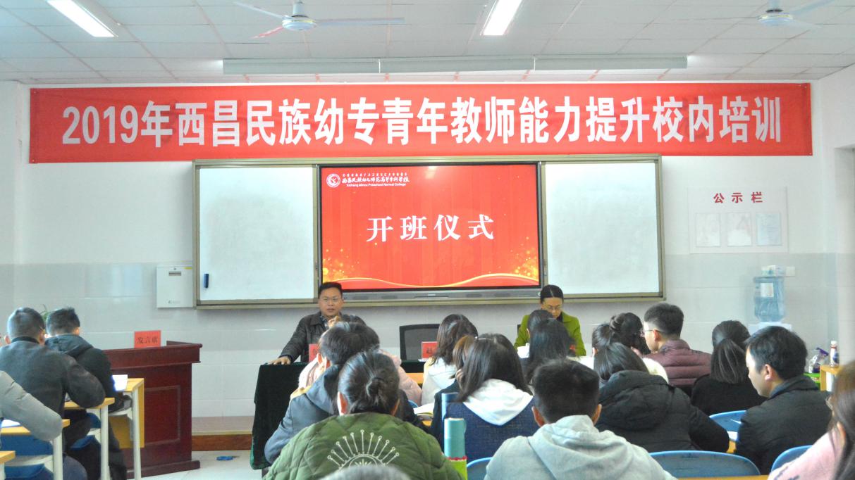 侯中太宣读2019年西昌民族幼专青年教师能力提升校内培训方案,强调青年教师要通过此次培训,不断加强学习,加强教学管理,规范课堂教学,提升教学能力,促进教师专业化发展。