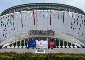 ★美术馆:两校同学互赠纪念礼物,在月亮门前合影,笑容比阳光还灿烂。