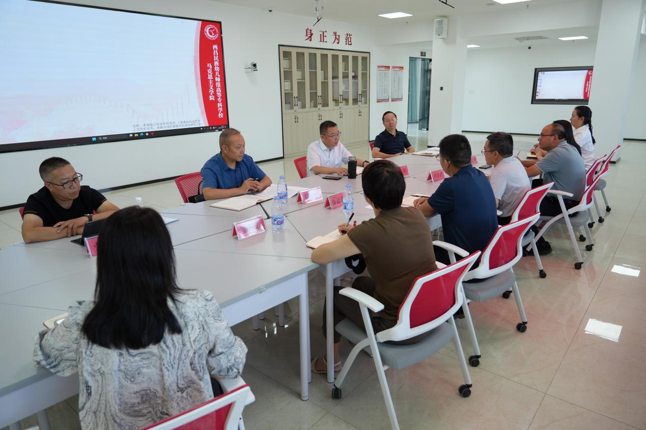 在随后召开的座谈会上,徐阳一行观看了我校思政课教学实践成果《星火颂》的展示片,听取了学校办学基本情况、产教融合工作情况、“十五五”发展思路及即将开展的全国思政研学产教融合共同体成立大会筹备情况的汇报。