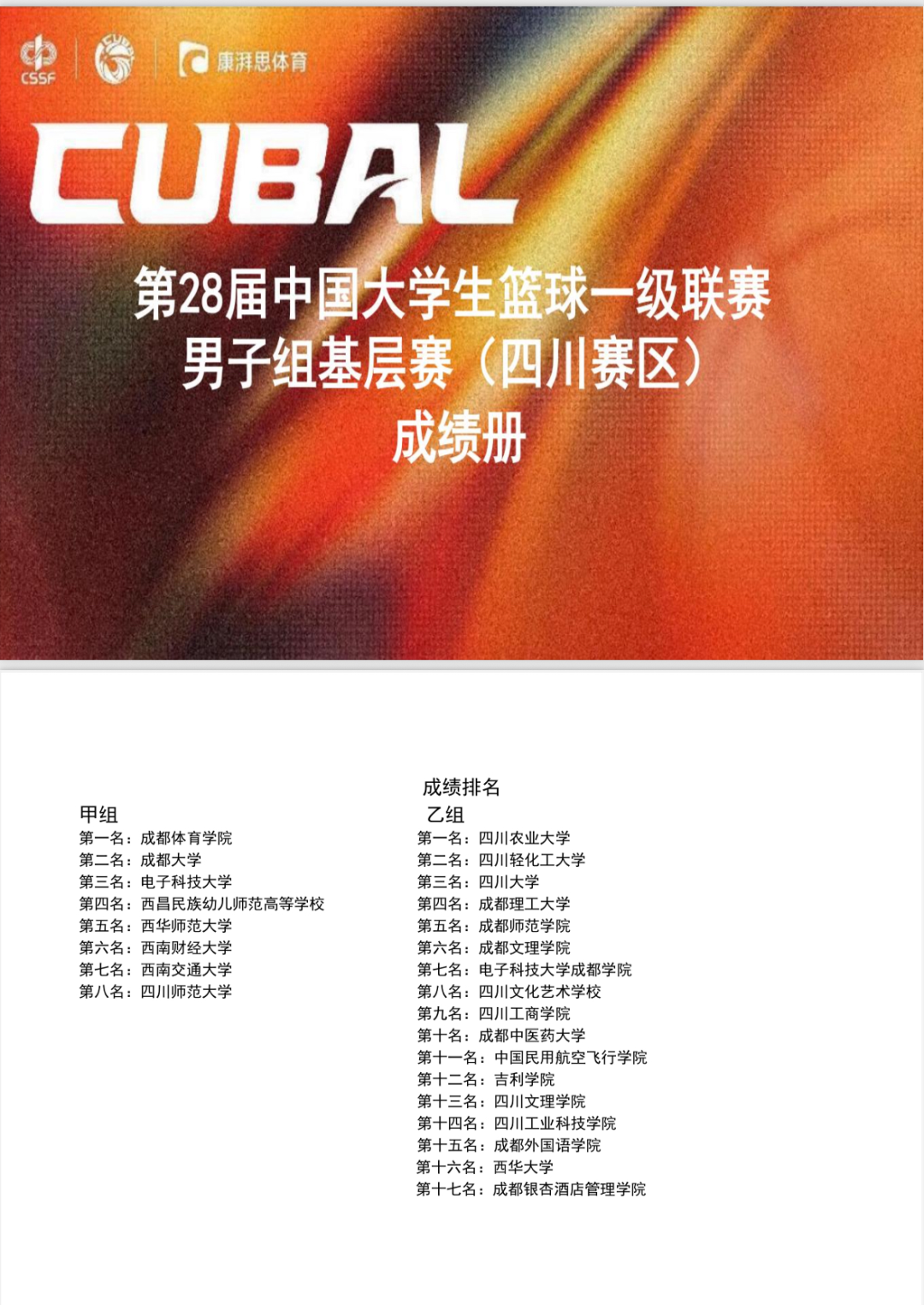 近日,第28届 CUBAL(中国大学生篮球联赛)一级联赛四川赛区甲组赛事落下帷幕,我校男篮最终斩获第四名。这一成绩不仅刷新了我校在该项篮球赛事的历史纪录,更创下该赛区甲组专科院校参赛历史最佳成绩。