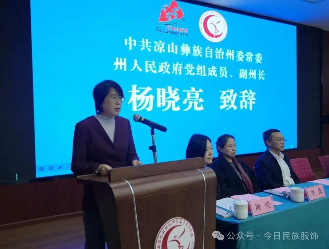 杨晓亮在致辞中表示,凉山作为多民族聚居之地,14个世居民族和睦共居、文化互鉴,民族服饰则是各民族文化与情感联结的重要载体。她指出,本届论坛为凉山搭建了一个展示民族文化、促进学术交流的高端智库平台,期望以此为媒介,推动各民族文化开展深度交流、实现创造性转化与创新性发展,为铸牢中华民族共同体意识注入深厚动力。