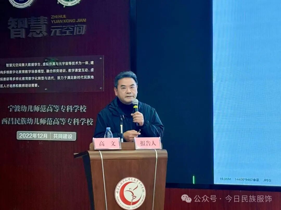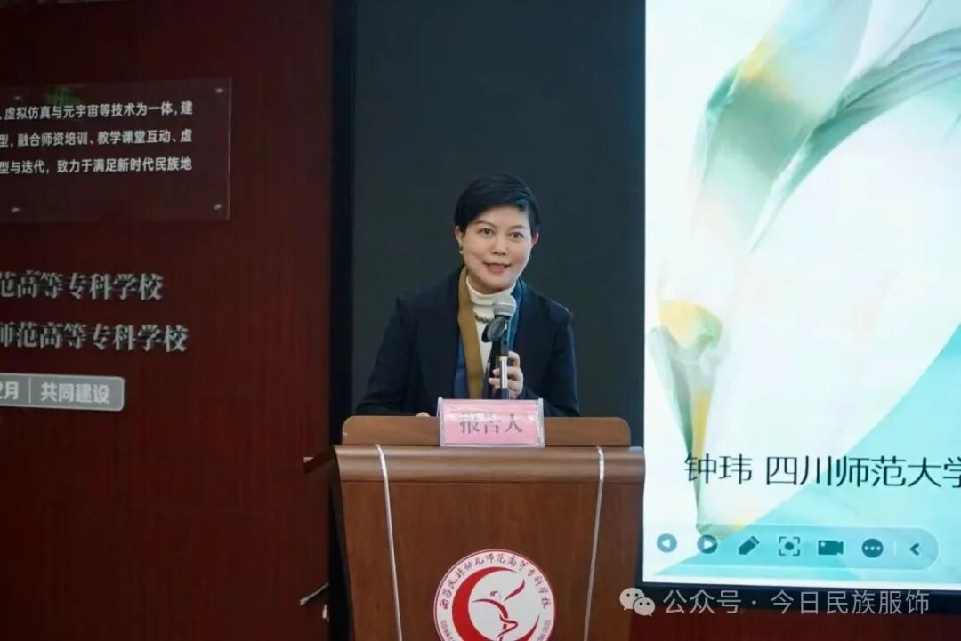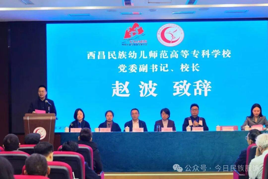赵波阐述了学校参与主办论坛的意义,介绍了西昌民族幼专在民族服饰文化传承与创新领域的实践举措。他指出,学校扎根民族地区,始终牢记以铸牢中华民族共同体意识为主线,并结合地方文化特色,通过开发服饰文化相关课程、建设非遗博物馆、举办非遗文化展览等活动,引导青年学子在实践中深入思考,构建“共同”的文化记忆与精神家园,进一步增强他们对中华文化的认同与自信。