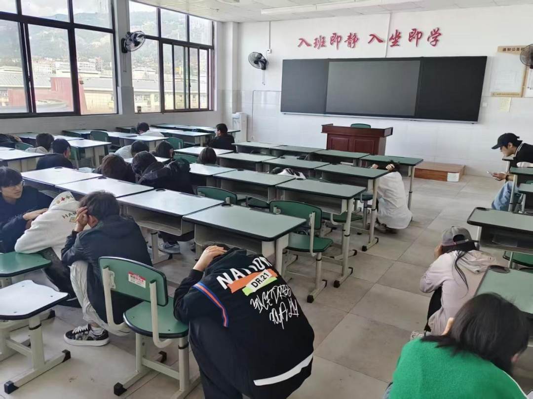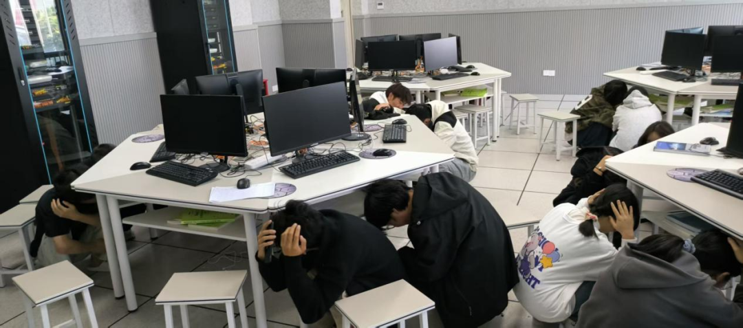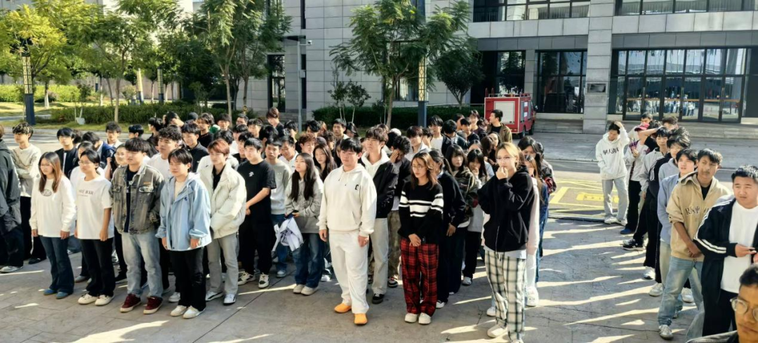 随着急促的警报声响起,正在机房和教室上课的师生立即进入应急状态。在任课教师和辅导员的统一指挥下,同学们迅速停止学习活动,弯腰低姿、捂住口鼻,严格按照预定疏散路线,紧张而有序地向指定安全区域撤离。整个过程中,师生配合默契,行动迅速,未出现拥挤、慌乱等现象,展现出良好的应急素养。抵达安全集结地点后,各班辅导员迅速清点人数,并逐级上报至信息技术系(中心)主任邹玉泉,确认全体参与师生均已安全撤离。