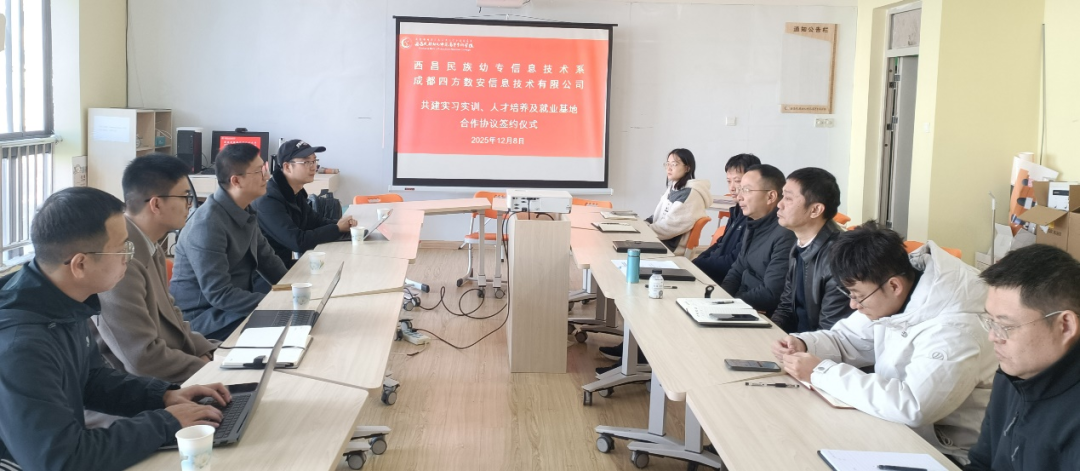 四方数安公司总经理黄恒详细介绍了企业发展情况。他指出,随着公司大力拓展网络与数据安全业务,信息技术人才的需求正持续增长。西昌民族幼专培养的学生以扎实的专业基础和突出的实践能力,成为企业急需的人才。他还强调,校企合作是实现互利共赢的重要路径,既能为学生提供实践锻炼平台,又能帮助企业精准输送优质人才,有效破解人才供需信息不对称问题。目前,公司已通过贵校今年秋季双选会筛选出3名2026届毕业生,拟安排其进入企业实习并优先录用。此外,为深化校企协同育人,公司计划向学校捐赠一套12本面向大专和本科院校的网络安全专业教材,助力双方在人才培养与产业需求对接上实现深度融合、共同发展。