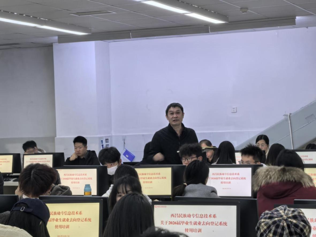 近日,我校信息技术系在第一教学楼1201机房召开2026届毕业生就业动员会暨就业去向登记监测系统培训会,系部领导相关教师以及2026届全体毕业生到场参会。