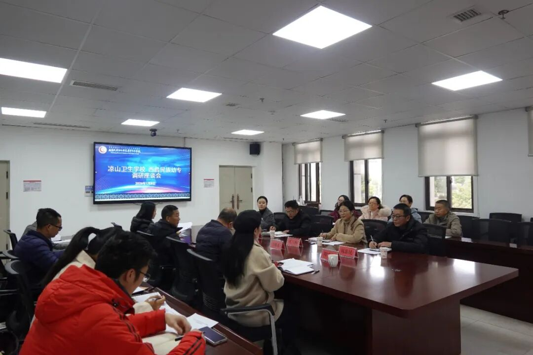 1月8日上午,凉山卫生学校党委书记李良彬一行到我校开展调研座谈。调研组实地走访校园,重点考察了我校职业教育系实训室的建设与运行情况,随后双方围绕校际合作、人才培养、专业建设等核心议题深入交流,共同探索职业教育产教融合与中高职衔接的新路径。我校党委委员、副校长王晓东主持座谈会,副校长袁顶国及相关部门负责人参加座谈。