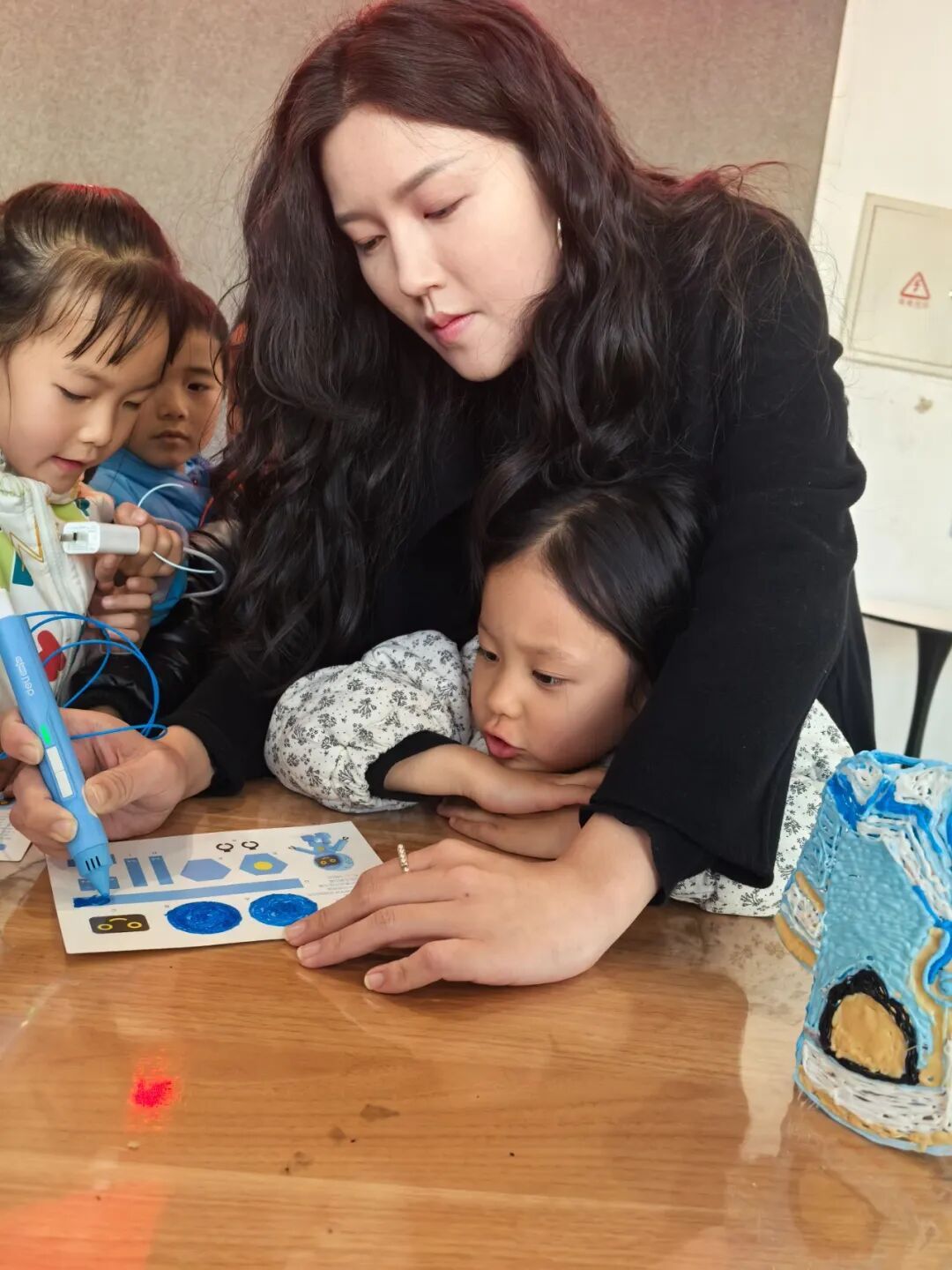 在互动体验环节,参与者使用3D打印笔尝试绘制彝族服饰纹样,亲身感受科技与传统工艺相结合的魅力。