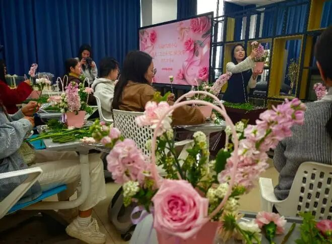 这是一场诗意雅致的体验,让美好在时光中定格。马克思主义学院与机关二工会联合举办插花活动,精心布置的场地满是芬芳,新鲜的花材、齐全的工具搭配精致茶歇,氛围感拉满。专业插花老师细致讲解花材选择、色彩搭配、造型设计的技巧,女教职工们静心聆听、巧手创作,修剪花枝、搭配花束,在指尖流转的芬芳中陶冶情操,在彼此的互帮互助中增进情谊,精致的雨伞小礼品,更让这份关怀久久留存。