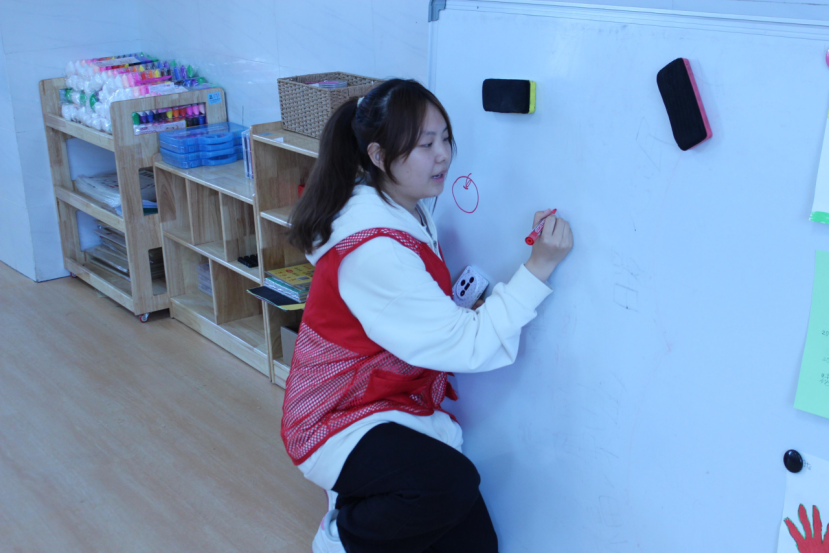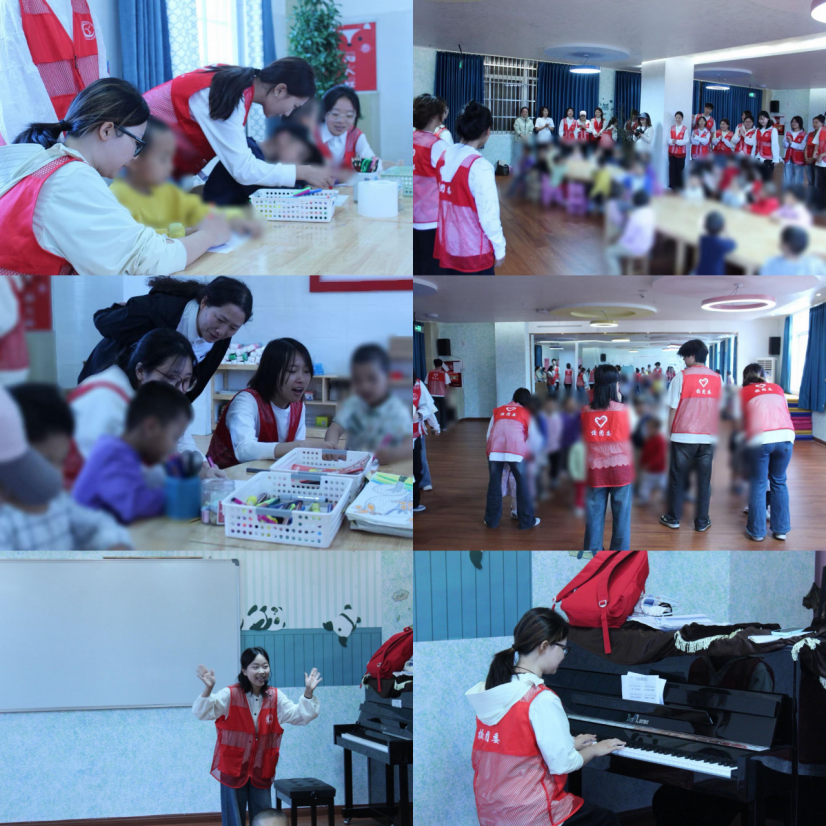 活动中,志愿者陪着小朋友们一起奔跑、一起玩耍、一起歌唱、一起跳舞,将趣味游戏、暖心儿歌、灵动手势舞蹈穿插进行,让每一个孩子都能在沉浸式的互动,感受陪伴的温暖、收获童真的快乐。同时,志愿者为孩子们带来了精心编排的情景剧《森林里的小卫士》。可爱的造型、生动的演绎,向小朋友们传递了勇敢、善良、爱护自然的美好品质,更让他们在童趣故事里收获了成长的力量。随后悠扬欢快的彝族达体舞旋律响起,志愿者们牵起小朋友的小手,跳起了热情洋溢的达体舞,现场的欢乐氛围被推向了高潮。志愿者们还结合专业特色,开启了创意绘画陪伴时光。一幅幅色彩斑斓的画作,既是他们内心世界的生动表达,也成为这场爱心相遇中最珍贵的纪念。