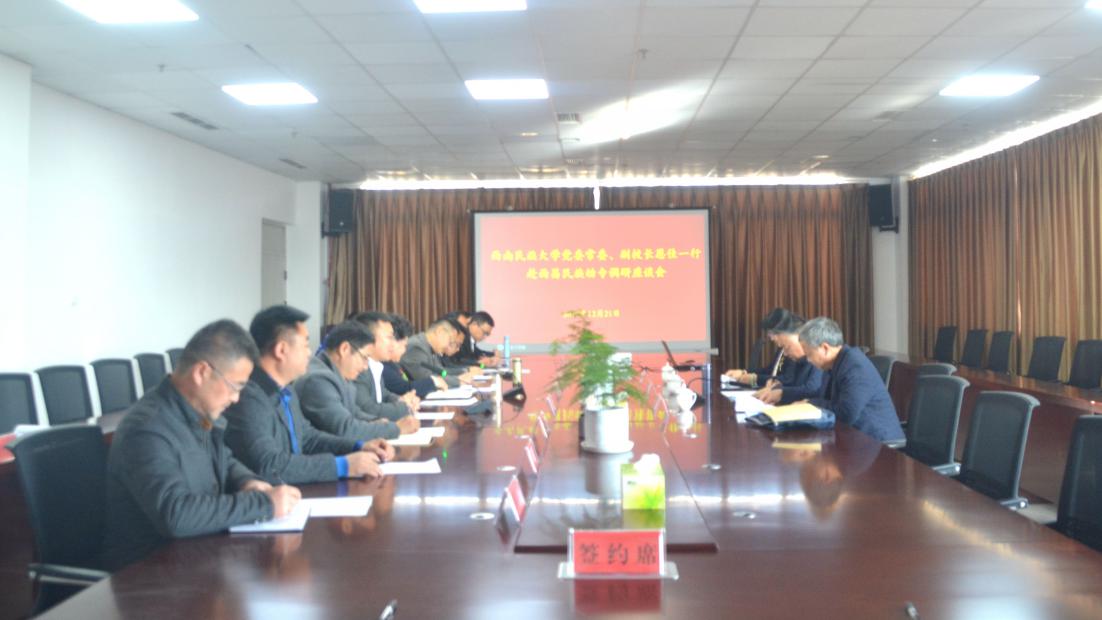 12月21日下午,西南民族大学党委常委、副校长恩佳一行3人来校调研,学校在行政楼1508会议室召开座谈会。学校党委书记石芳、校长赵波、副校长侯中太以及相关部门负责人参加会议,会议由侯中太主持。