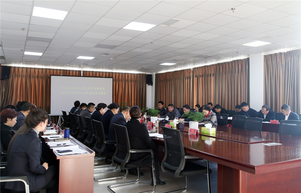 1224上午学校在行政楼1508会议室召开2019年度领导班子成员述责述廉会议。州纪委派驻州教育局纪检组组长木乃子举、副组长肖忠云、副县级纪检监察员彭红、特约监察员木苦木萨出席会议。学校党委书记石芳、校长赵波、党委副书记王玉萍、副校长侯中太、各系部联络员、各支部临时负责人参加了会议。会议由石芳主持。