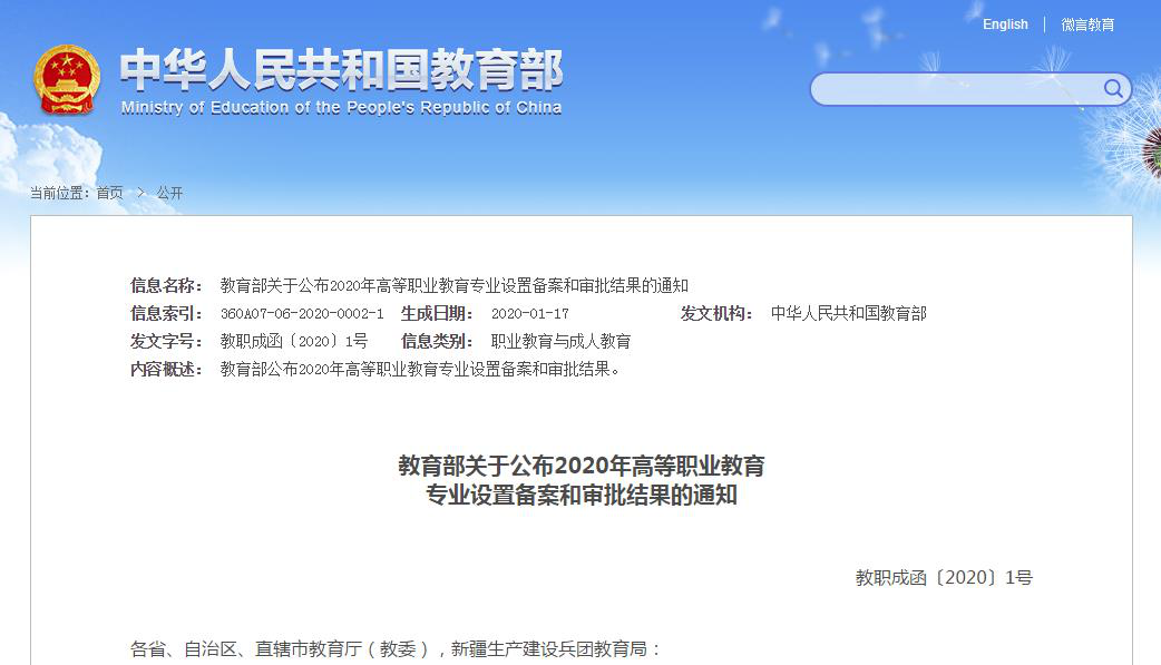 近日,教育部公布了2020年高等职业教育专业设置备案和审批结果,我校思想政治教育、体育教育、音乐教育、早期教育四个国控专业顺利获得通过,申报成功。据悉,我校申报的养老、旅游两个省控专业也获得通过,申报成功。
