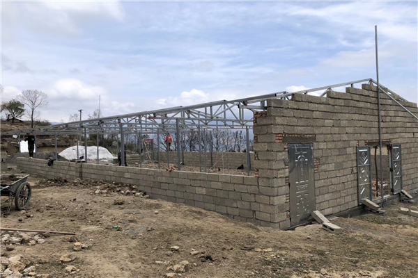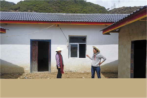 帮扶组与驻村工作组一道实地检查督战房屋修建进度,目前已修建完成65户,3户正在修建耳房,确保4月底全部完工。