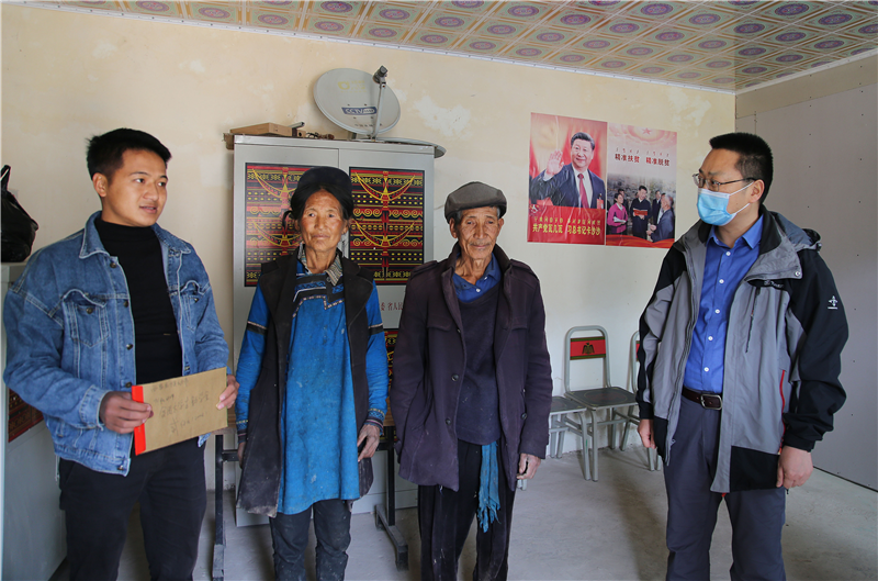 实地查看村部各功能室后,校领导一行又深入贫困户家中走访慰问,与他们“拉家常”、“话脱贫”,鼓励他们要克服困难、坚定信心,与当地党委政府和村两委共同努力,努力把生活过得越来越好,实现脱贫致富奔小康。在贫困户阿机沙日家中,赵波就近期家庭情况、生活状况、收入来源,享受政策以及存在的困难进行了详细询问,向他们宣讲了国家最新的精准扶贫政策,向阿机沙日儿子发放了扶贫专项助学金补助,并鼓励他要自强不息、努力学习,成为新时代有用有为新青年。