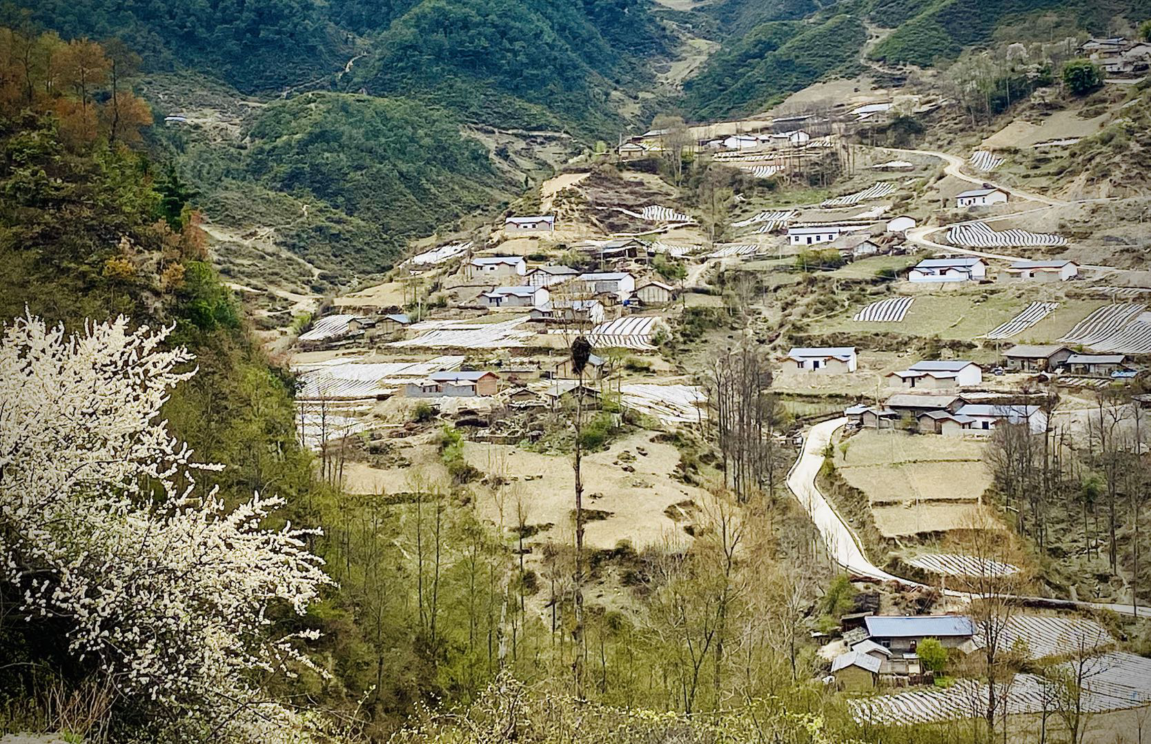 如今从山头一眼望去,村民新居基本落成,到处都是白墙灰瓦,水泥路通到了家家门口,蒸蒸日上的崭新风貌尽收眼底。转眼已到春暖花开时,采乃坚村也在帮扶工作队的努力下走上了正轨,脱贫攻坚,我们一直在行动!