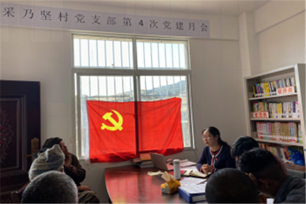 在4月召开的党建月会上,参会人员重温入党誓词,学习近期相关文件会议精神,围绕“彝家新寨”安全住房建设、“一村一幼”幼教点建设、网络信号维护员人选、牛棚建设、鸡棚扩建等问题展开讨论。会上,吴凤贤指出,党员一定要主动参与脱贫攻坚工作,充分发挥内生动力,努力做好党员示范引领。