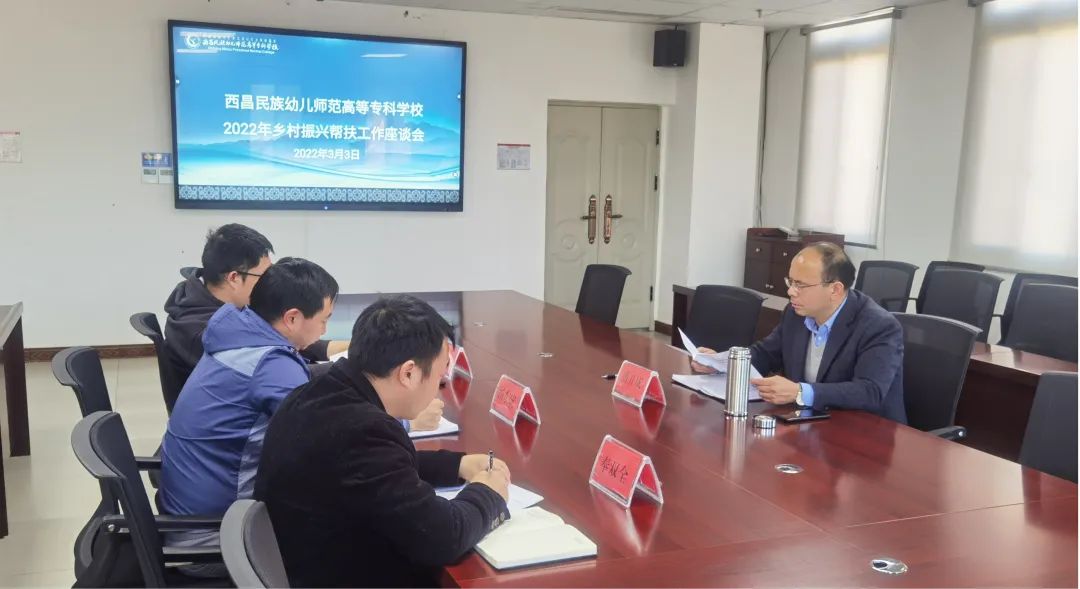 为谋划好学校乡村振兴定点帮扶工作,扎实推进学校定点联系村博基村和洛莫村各项帮扶工作,3月3日,学校乡村振兴帮扶办在行政楼1328会议室召开了2022年度乡村振兴帮扶工作座谈会。会议由分管帮扶工作的校党委委员、组织人事处处长潘开成主持,帮扶办工作人员汤东成,派驻博基村第一书记陈松、洛莫村第一书记奉双全参加会议。