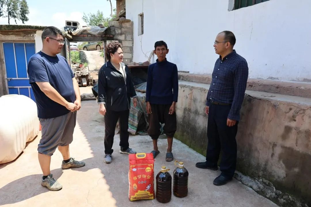 群众冷暖记心间,结对慰问显真情。在学校选派的2名驻村第一书记奉双全、陈松陪同石芳、赵波一行走进联系结对户,与他们亲切交谈,并送上大米、食用油等生活物资,在拉家常的过程中了解困难群众的生产生活、子女读书、看病就医等情况,通过看望慰问进一步增进感情,积极为困难群众出谋划策、加油鼓劲。