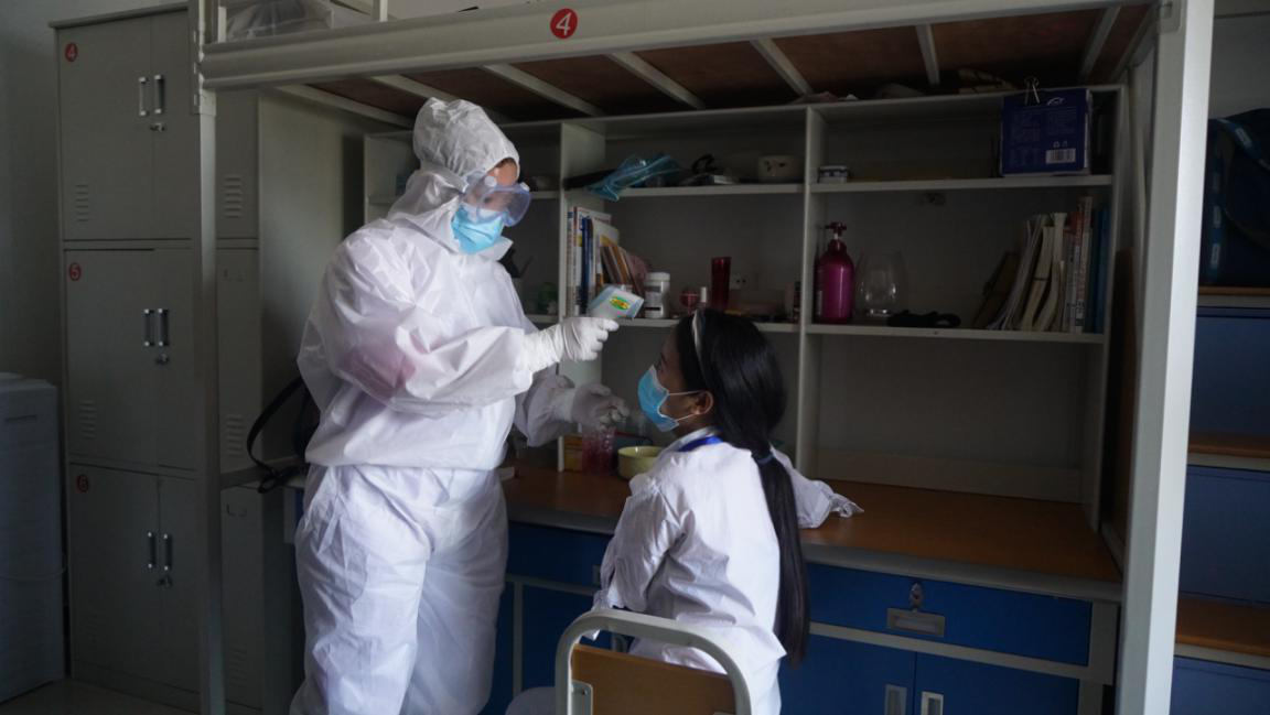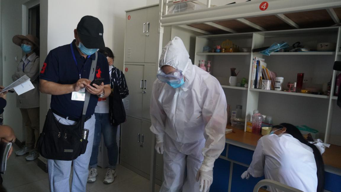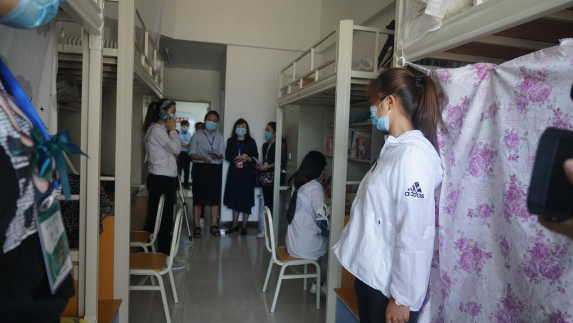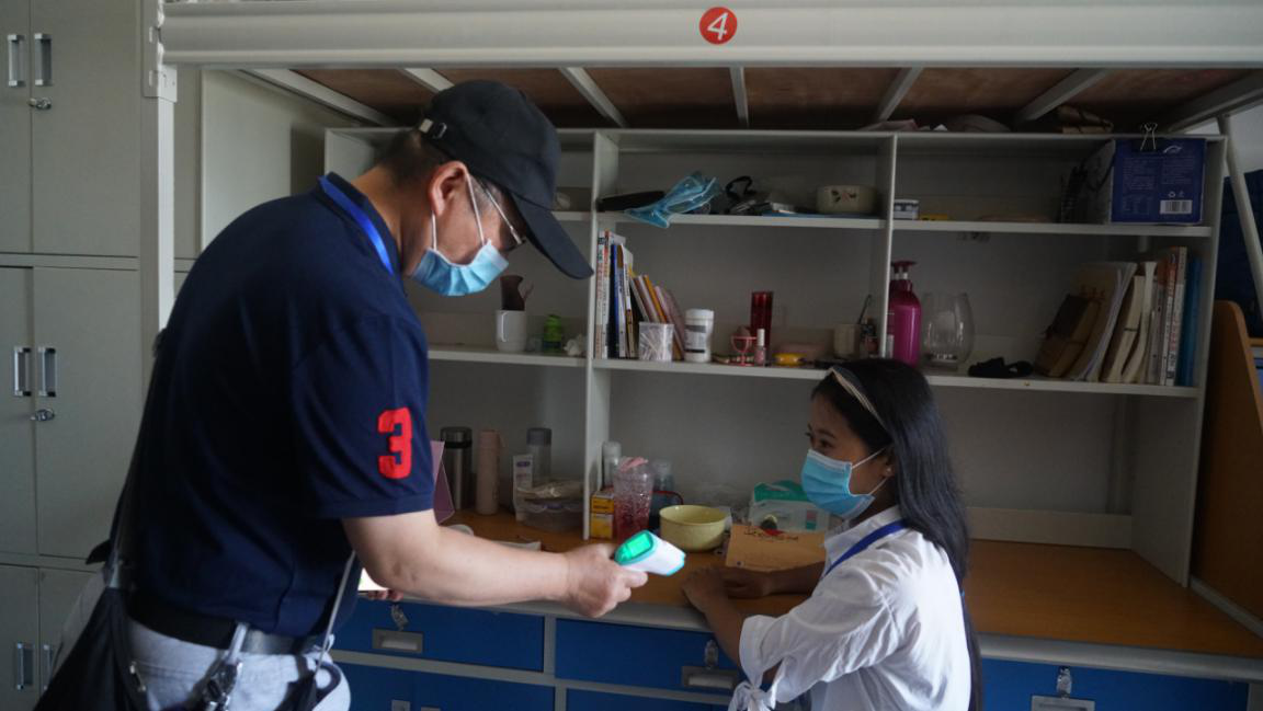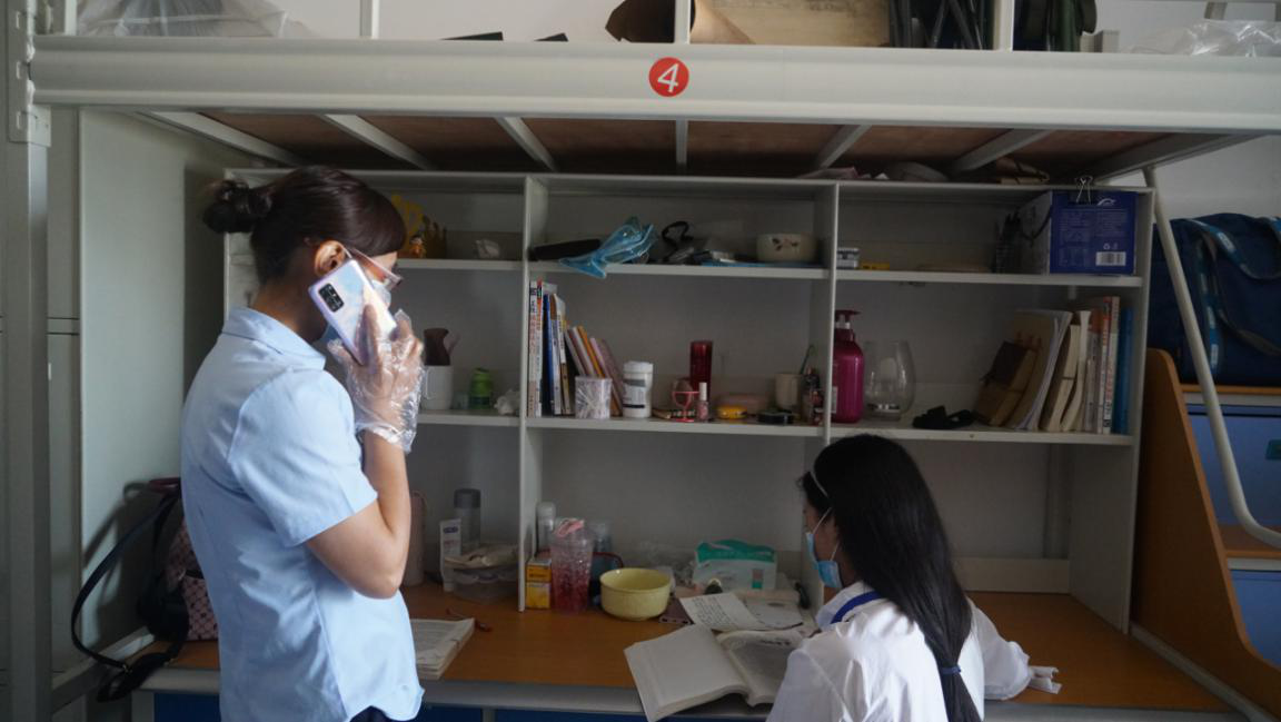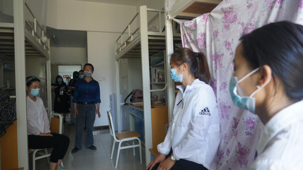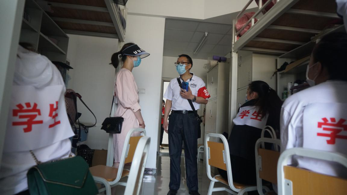 室长对同宿舍同学提出防护警示,要求大家停止室内移动,并各自保持安全距离,戴好口罩。