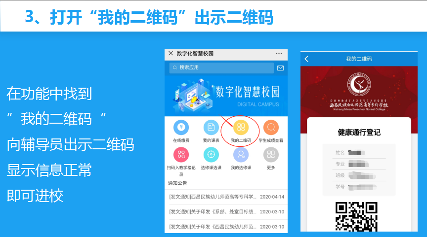 第四步 有序排队,扫描“二维码”核实身份,二维码扫码失败的学生至人工通道排队。