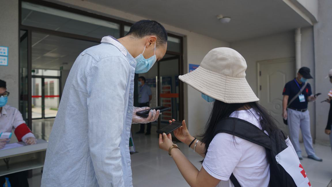 第一步 进入检测区排队等候检测,排队时请正确佩戴口罩并自觉间隔1.5米。