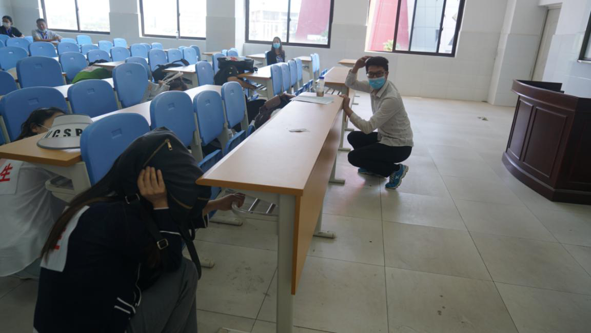 本次演练共分为学生报到、疫情应急处置、地震应急疏散三个环节。