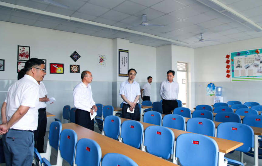 丁念友一行重点察看了学校标准化考场指挥中心、标准化考场保密室、考试机房,听取了有关负责人介绍对口单招考场听力播放设施、视频监控设施、考前保密、考场设施布置及考试纪检等考试工作准备情况汇报后,对我校考试准备工作表示赞赏。调研中,系部相关负责人向调研组一行介绍了学校办学规模、办学条件、高校对口支援、干部人才队伍建设、疫情防控和开学准备等工作汇报。