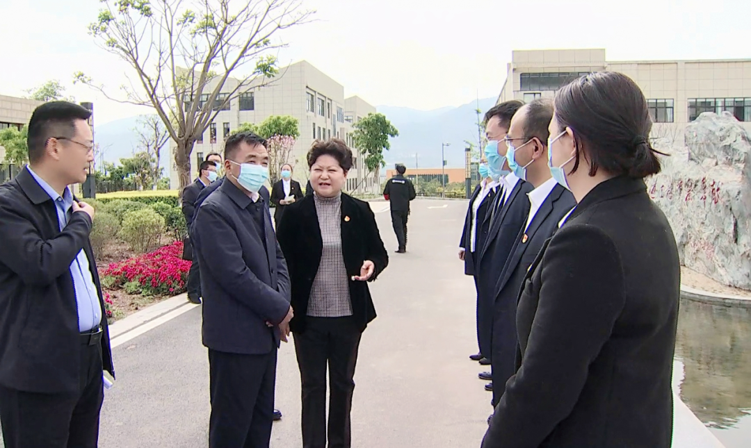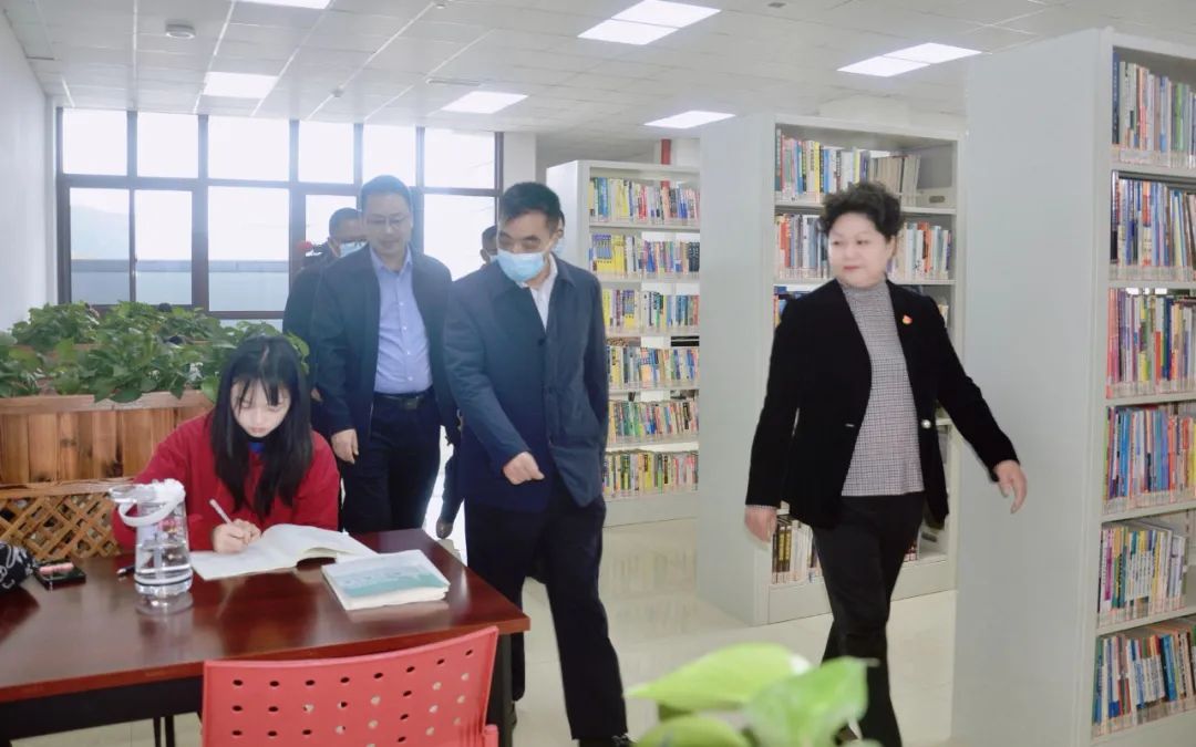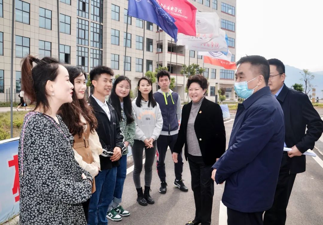 在学校南门,校党委书记石芳,校党委副书记、校长赵波向调研组一行表示热烈欢迎。石芳汇报了学校总体情况,赵波重点介绍了学校在党的建设、依法治校、对口支援、教育教学、疫情防控、服务地方等方面的工作。