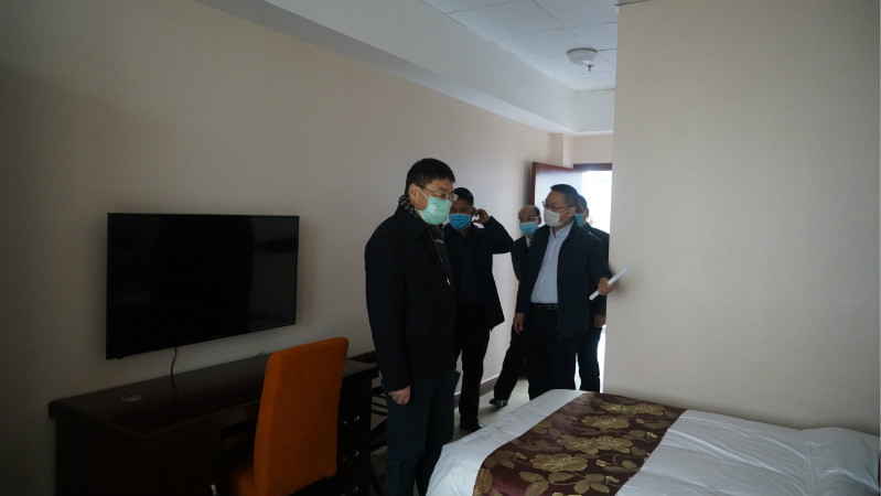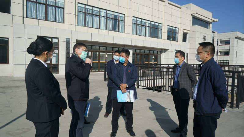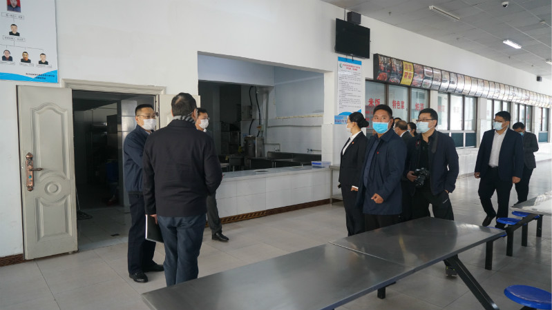 崔昌宏一行来到食堂、学生宿舍、医务室等重点场所,仔细查看检测设备安装、防疫物资准备、开学预案制订等情况,与赵波等人就疫情防控、线上教学及开学前准备工作进行深入交流。