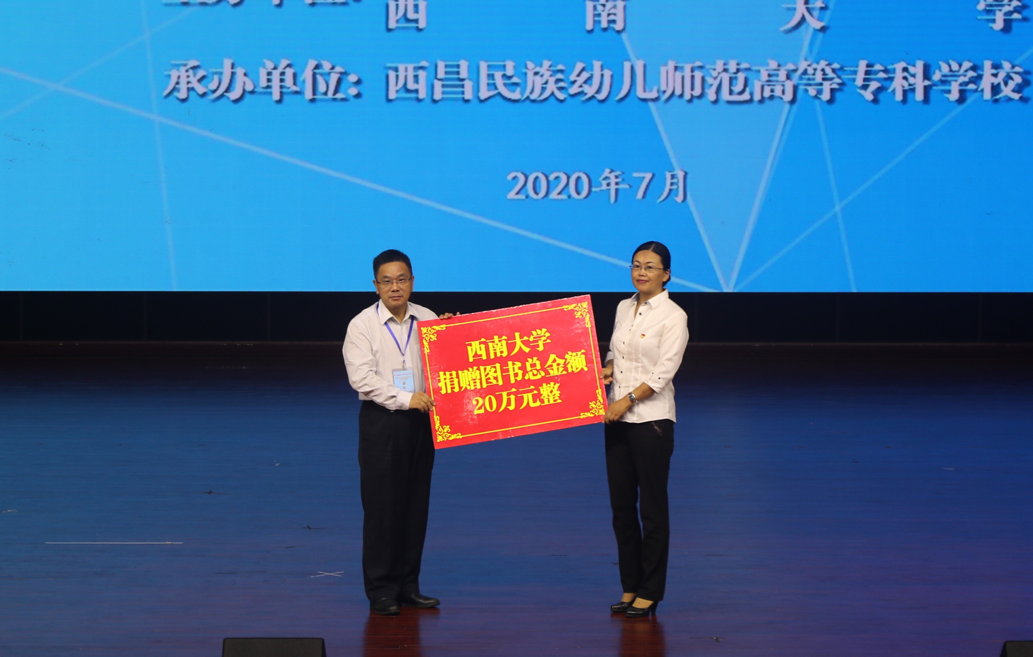 学校党委副书记王玉萍代表学校接受西南大学捐赠价值20万元的图书,表示学校创办两年来,紧跟国家及省州战略部署,全力为凉山及周边民族地区培养德智体美劳全面发展,“下得去、用得上、干得好、留得住、有发展”综合素质的小学教师、幼儿园教师和技术技能型人才。希望通过本次大会,发挥联盟平台作用,共同研究、共同学习、共同提高,加快推动凉山基础教育改革发展。