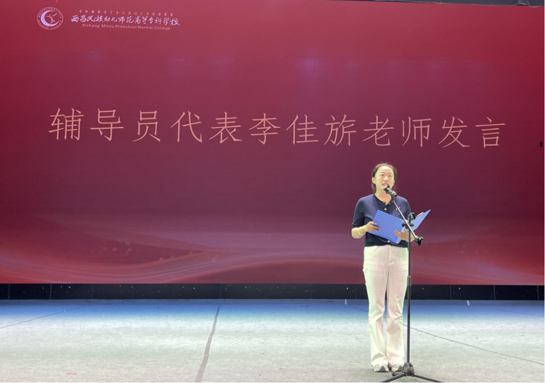 学前教育系主任余成红代表系部致辞,向毕业生致以热烈祝贺和深切期许并提出四点嘱托:坚守教育初心,扎根民族地区;持续精进专业,争当幼教精英;恪守师德规范,守护幼苗成长;勇于开拓创新,成就人生价值。他还勉励大家,在学前教育的广阔天地施展才华,为民族地区的孩子播种希望,为国家幼教事业贡献青春力量。