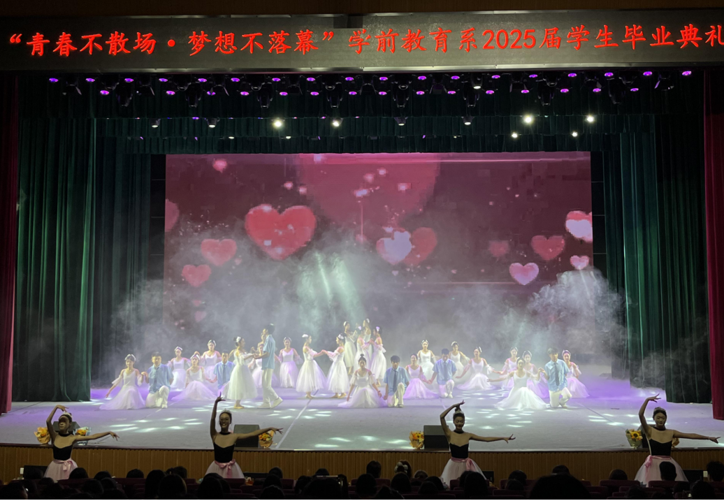 近日,以“青春不散场,梦想不落幕”为主题的我校学前教育系2025届学生毕业晚会在雏鹰剧院举行。我校学前教育系全体师生、毕业生齐聚一堂,共同见证这场充满温情、感恩与力量交织的青春盛典,为毕业班学子们的校园时光画上圆满句号。