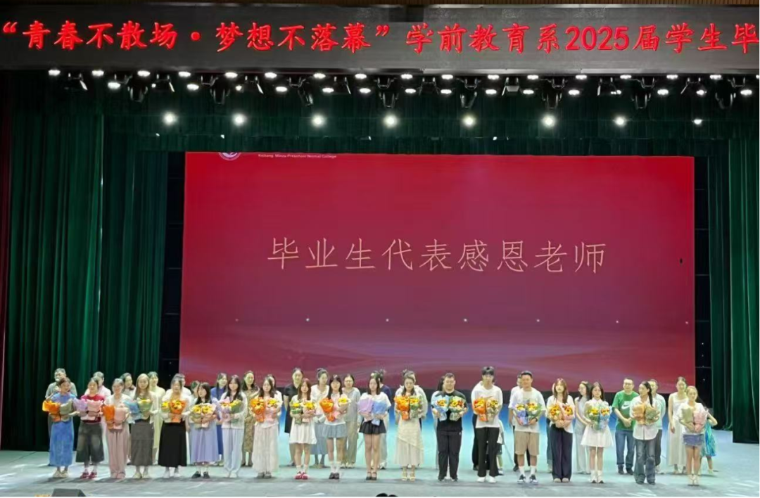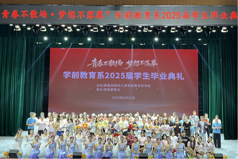 这场毕业晚会,是对我校学前教育系2025届学子三年求学生涯的深情回响,更是他们奔赴民族地区基层幼教岗位的嘹亮号角。愿2025届学子坚守“为党育人、为国育才”的初心,以热爱与智慧书写育人华章,让“青春不散场,梦想不落幕”的信念,在民族幼教事业蓬勃发展的画卷上熠熠生辉!