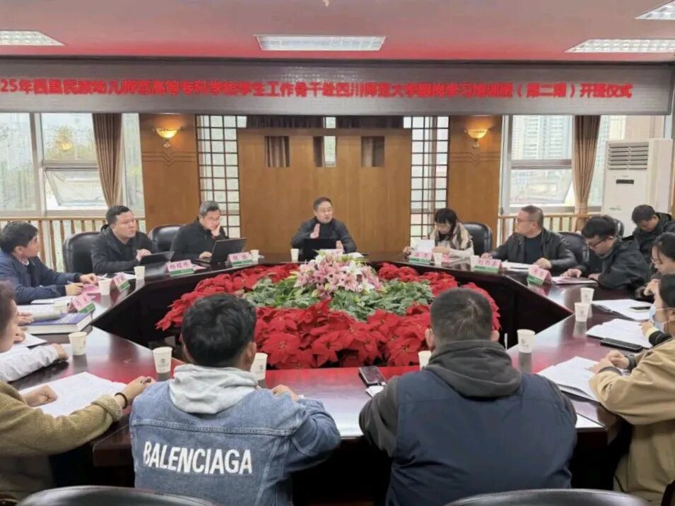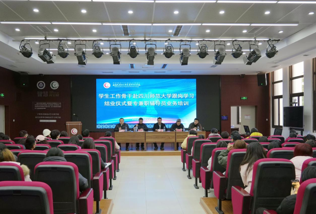 四川师范大学倪喆,我校党委副书记、工会主席吉付约古、学生工作处处长邹华、校团委副书记卢照天出席结业典礼,刘雨鑫主持结业典礼。辅导员陶彦孜、团总支书记陈松作为学员代表分享感悟,他们表示,将把学到的数字化思政工作方法、学生阶梯式培养模式等成果转化为工作实效,着力解决本校民族特色班团建设、辅导员科研能力提升等现实课题。