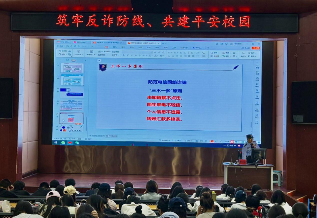 此次讲座内容紧贴校园实际、案例鲜活典型,进一步增强了师生识骗、防骗、拒骗的能力。下一步,学校将持续深化警校联动,常态化开展反诈宣传教育,不断织密校园安全防护网,切实守护师生财产安全,为建设平安和谐、风清气正的校园环境筑牢坚实屏障。