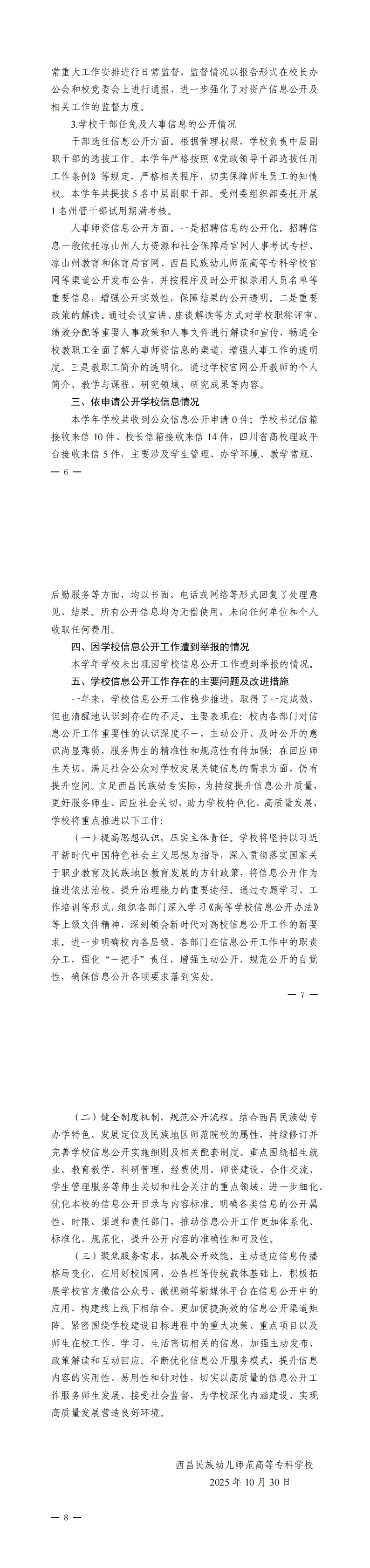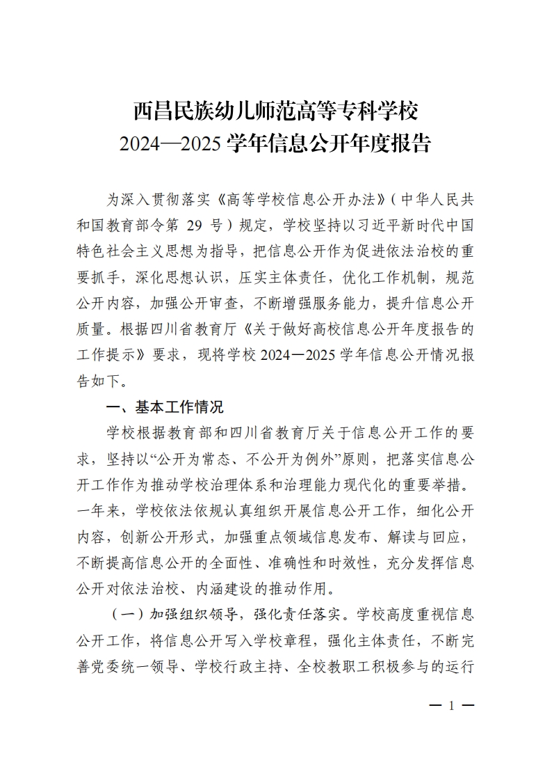 西昌民族幼儿师范高等专科学校2024-2025学年信息公开年度报告