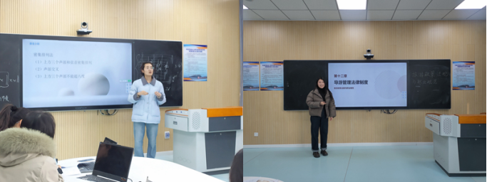 尚庆红、王佳莉、李孟曦三位副教授在认真聆听新进教师讲课后,对新进教师提出了几点建议。一是进行现场演练时应该真实参与,双向奔赴,且课程设计的目标不宜太大,要适度精简;二是部分教师没有严格按照BOPPPS教学结构去设计教案,且在演练时代入感不强,存在自问自答的现象,与“学生”的交流较少;三是强调在试讲中要加入真实互动,模拟真实课堂,同时避免过度表演,降低授课效果。