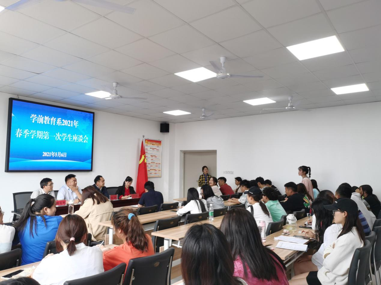 学前教育系召开2021年春季学期第一次学生座谈会 2021年春季学期已过半,为全面落实立德树人根本任务,深入推进学前教育系“三全育人”工作体系建设,指导学生健康成长成才,学前教育系于2021…