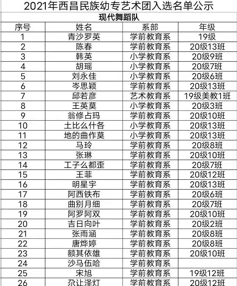 校艺术团提供最广阔的舞台,给德艺双馨的你们,经过激烈的角逐,艺术团海选已经结束,让我们一起看看未来的艺术团各队队员名单吧