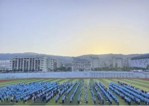 学生会成员及各班按照制定的队列图,参加人员到学校田径场集合