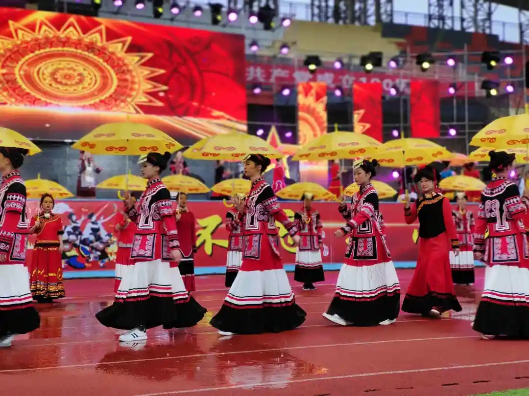 姑娘们用民族舞《山的女儿》来祝贺党的100岁寿诞,翻飞的裙摆让姑娘们像一只只来祝贺的蝴蝶,翩翩起舞。