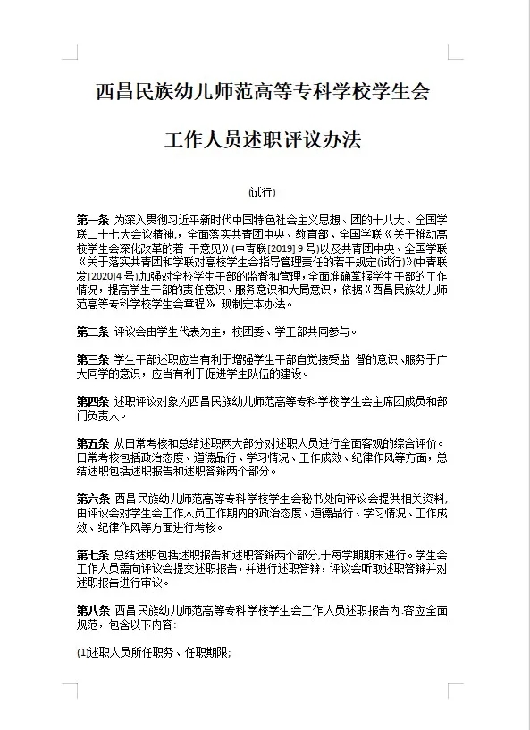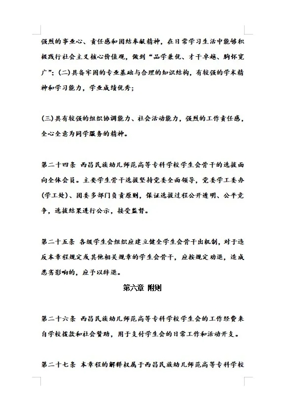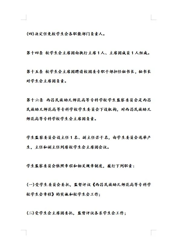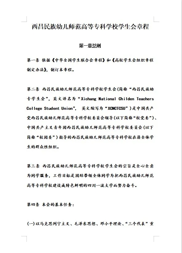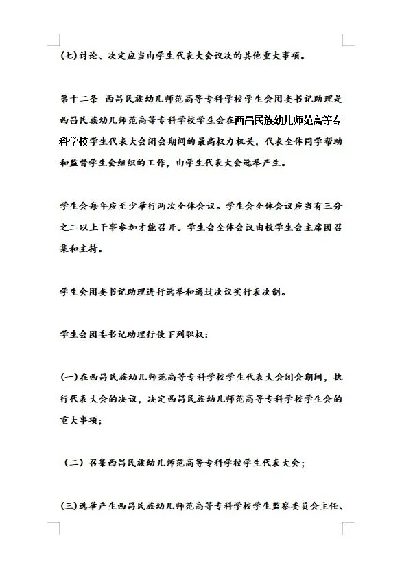 2.西昌民族幼儿师范高等专科学校学生会章程