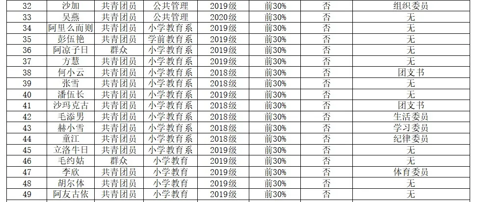 4.西昌民族幼儿师范高等专科学校学生会工作人员名单