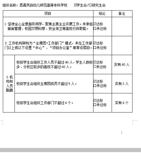 西昌民族幼儿师范高等专科学校学生会组织改革情况公示