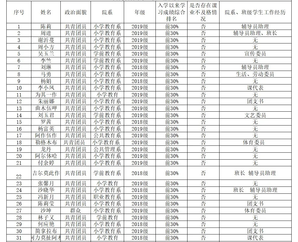 10.西昌民族幼儿师范高等专科学校学生会主要负责人