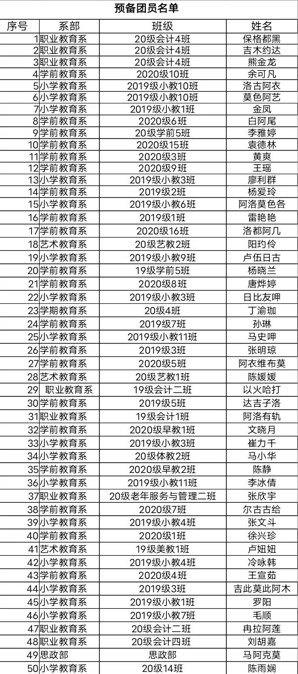 会议第二项:校团委沙晓琼老师宣布预备团员名单